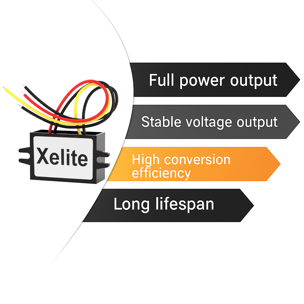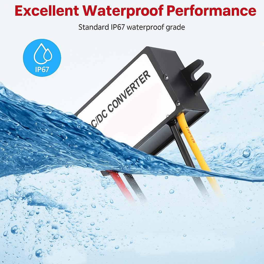 This DC-DC converter efficiently steps down a wide 8-90V DC input to a regulated 5-12V DC output. It is designed for reliable power conversion in automotive, industrial, and communication systems. Using advanced synchronous rectification technology and premium electronic components, this converter achieves high efficiency, low ripple, and excellent long-term stability. Its compact structure and robust design make it ideal for use in harsh environments or space-limited applications.