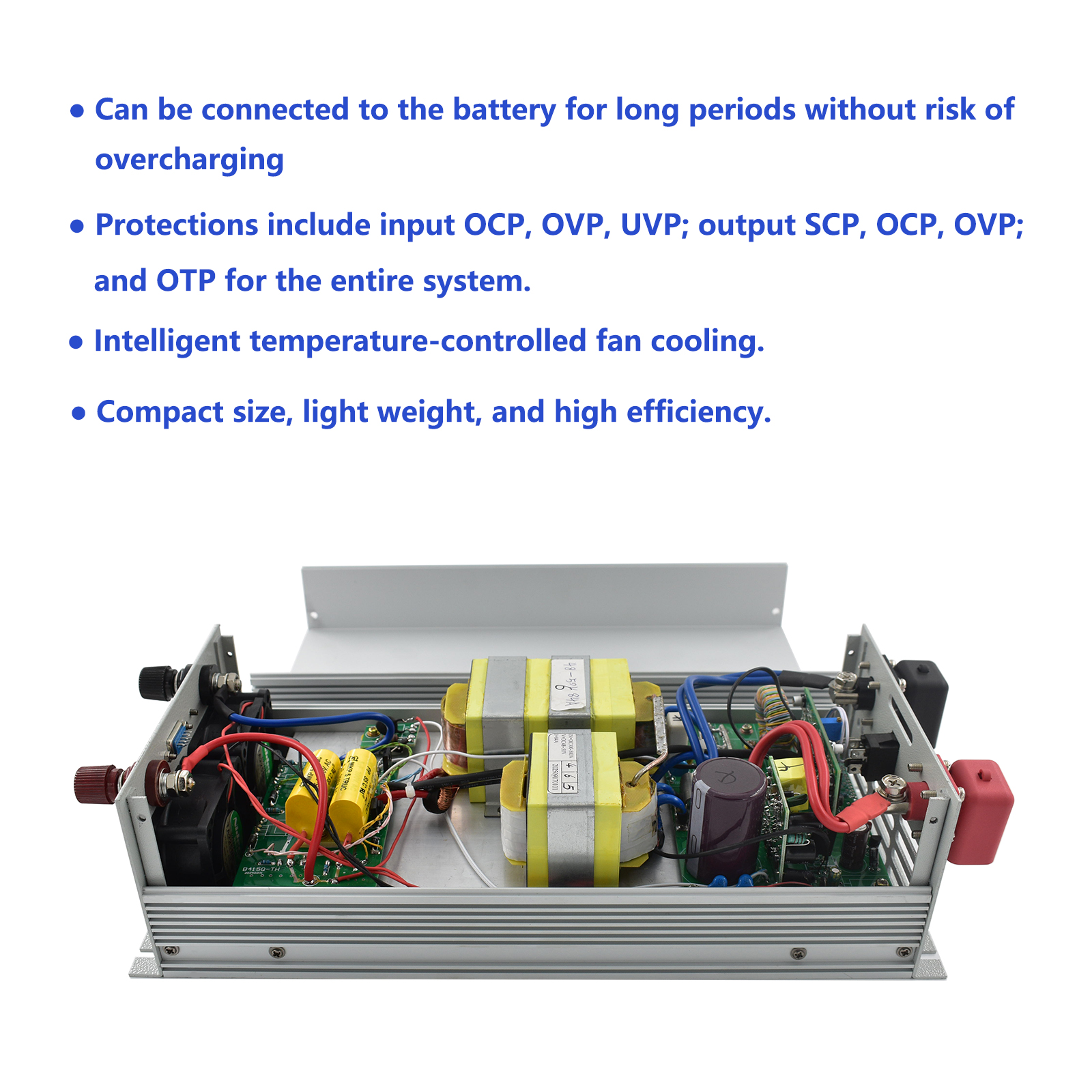 Compact and Efficient: Small size, lightweight, and conversion efficiency up to 90-95%.